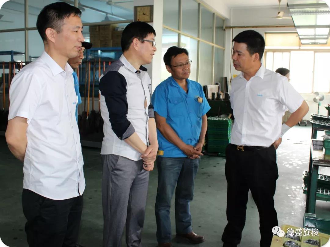 5月23日上午,浙江杰克縫紉機股分無限公司總裁阮積祥師長教師一行離開德鷹公司觀賞考查,我公司總司理顧志英、出產副總劉繼光和發賣副總章國龍一道伴隨觀賞并熱忱先容,杰克阮總在公司帶領的伴隨下前后觀賞了公司的數控加工中間流水線、磨床流水線、熱處置和佳構分廠等車間,實地觀察了機器人拋光裝備運轉環境。